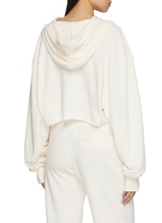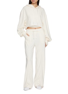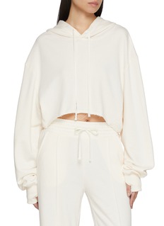 A modern take on off-duty dressing, this cropped hoodie balances softness with quiet structure. Cut from plush mid-weight terry, it features a relaxed drape and adjustable drawstrings, making it ideal for layering over tanks or pairing with matching lounge pants.