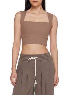 Engineered for movement and line, this cropped top sculpts the body with a smooth, ribbed finish and four-way stretch. Designed by Nylora, it delivers light support with a built-in bra, ideal for studio sessions, travel days, or pared-back layering.