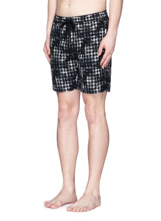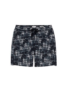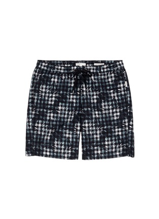 Onia的Charles 7""游泳短裤运用传统剪裁结合弹性裤腰,是品牌经典款式之一,新季这款以鲜明的黑白格纹融合绿色叶片,构成独树一帜的图案,结合手感顺滑的尼龙面料,既舒适又不失摩登感。