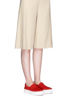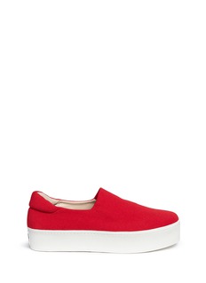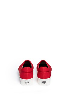 纽约品牌Opening Ceremony这款厚底便鞋采用红色斜纹布制作,无缝接设计令鞋形更见流畅简约,配上对比鲜明的白色厚鞋底,让您轻松打造前卫的牛津街头风格。