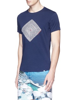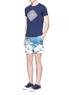 诞生于英国的Orlebar Brown致力于打造风格鲜明独特的男装,受到土著文化的启迪,品牌以细密的白色波点围绕中央的红点组成四边形印花图案,与深蓝色主调形成反差,给人别具一格的摩登感。无论是休闲还是海滩度假时穿着,都令您显得个性十足。