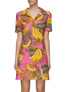 Oscar de la Renta 以精美的装饰和细节处理诠释令人无法抗拒的美式优雅。正如这款连衣裙,其采用纷繁美丽的香蕉图案点亮设计,为单品注入浓郁的夏日气息。POLO 领设计则更添休闲魅力,一展你的自信迷人魅力。