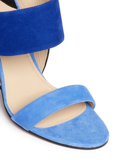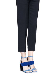这双高跟鞋是Paul Andrew的新季设计,通过不同色度的蓝色麂皮塑造出充满妩媚感的搭带款式,高贵而独特,粗跟设计透出休闲气息,随性又不失优雅,穿上它令人眼前一亮。