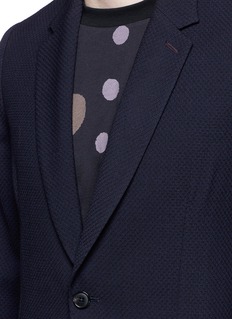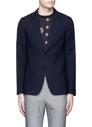 保罗史密斯这款西服外套采用羊毛打造,表面布满细小凹凸纹理,塑造出犹如暗花的效果。衣身无内衬及无垫肩设计,带来透气舒适的体验,同时让您活动自如,轻松展示认真大方的帅气魅力。