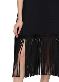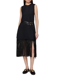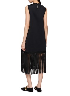 Pepa Pombo’s Numa dress channels the house’s artisanal spirit through fluid texture and sculptural motion. Cut in a clean sleeveless silhouette, it falls into a cascade of braided fringe that sways like soft light in motion. A poetic piece that transitions effortlessly from gallery previews to evening gatherings with directional ease.