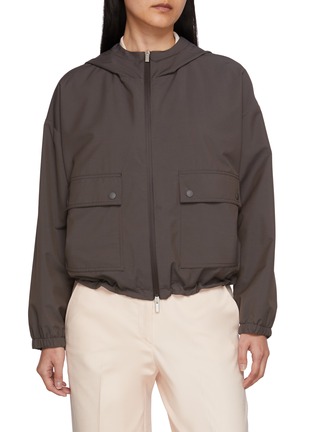 Peserico's hooded jacket features in a dark brown hue to lend a timeless flair to your outerwear collection. With spacious flap pockets and a hood, this piece blends functionality with a contemporary edge.