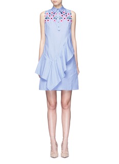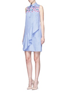 彼得皮洛托这款衬衫裙采用轻身透气的纯棉面料制作,淡蓝色拼接粉色及绿色镂空花卉蕾丝,配上不对称荷叶边,简约大气之中透出清新自然格调,简单搭配一双高跟鞋,便是优雅的青春造型。