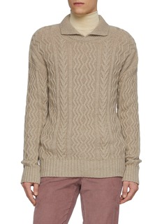 Redefining luxury ensembles with contemporary designs, Piacenza 1733 introduces this sweater, featuring a timeless beige hue. Its criss-crossed cable knit lends a tactile edge, making it a standout accessory for any sophisticated ensemble.