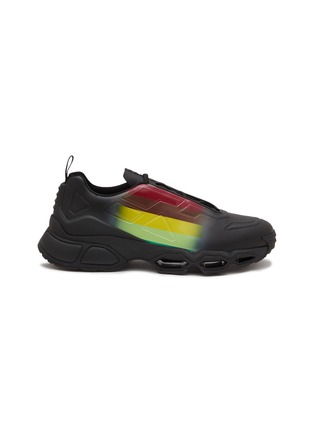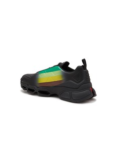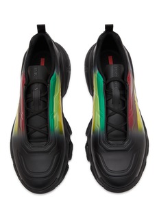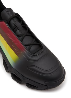 Prada(普拉达)这款运动鞋以彩虹色调拼色元素重释经典鞋款,带来趣味摩登格调。喷涂印花效果与哑光黑色主调相得益彰,轻松升级你的个性造型。