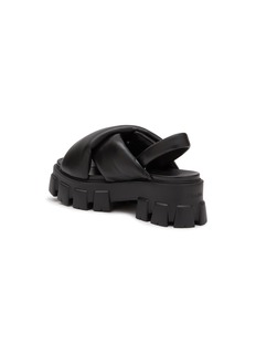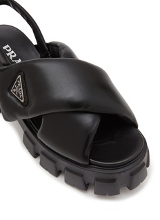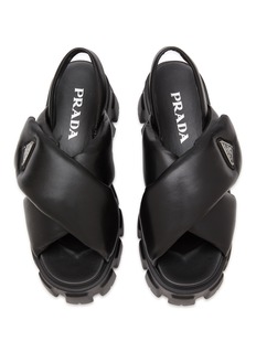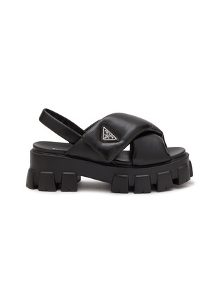 Prada(普拉达)这款凉鞋得名于其橡胶厚底,藉由隽永的浑厚设计美学,衍生别出心裁的研究、创新与风格。夏日风软羊皮鞋面与制服式鞋底线条开启对话,巧妙融合摩登与优雅概念。