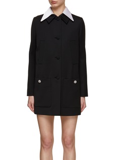 Prada(普拉达)这款精致而柔美的羊毛缎外套呈现挺括的直筒廓形,单排扣外套饰有可拆卸撞色衣领,搭配仿水晶纽扣,尽显优雅考究。