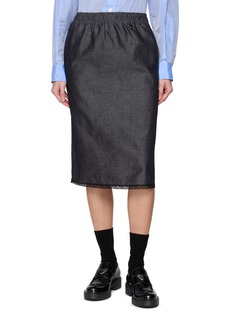 Prada 于 1913 年在米兰创立,是前卫风格的代名词,擅于将创新、精致而新潮的设计与手工产品特有的品质融为一体。这款半裙用牛仔面料强化复古感,中长廓形平衡随性与柔美,蕾丝下摆藏着细腻设计,低调标识添质感,是衣橱里兼具复古与女性化的实用单品。