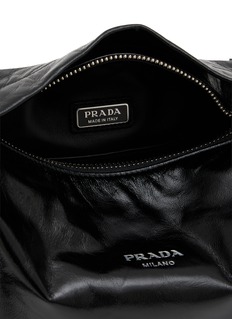 Prada 背包以实用而精致的设计重新定义了传统意义上的奢侈品。这款单肩包由柔软皮革制成,打造出复古的轮廓,并饰有珐琅金属三角徽标。