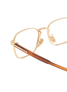 Crafted in luminous gold-tone metal, these rectangular optical frames embody Prada’s elegant precision with clean geometry and lightweight comfort. The contrast acetate temples add a warm, refined balance—perfect for everyday clarity with a polished, understated finish.