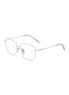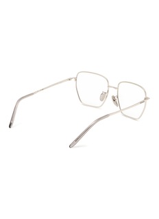 Crafted in a polished silver-tone metal, these square ophthalmic frames reflect Prada’s precision-driven minimalism. The ultra-light construction, sculpted nose pads and slender temples create a barely-there silhouette—an elevated essential designed for clarity, comfort, and understated sophistication.