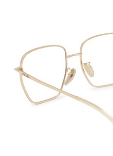 Embrace timeless elegance with these Prada eyeglasses, featuring delicate gold frames that blend classic sophistication with modern style. The refined geometric shape enhances the facial features, while the clear lenses promise optimal clarity. Accented with the Prada logo at the temples, these glasses are an ideal choice for those who appreciate luxury and style in their everyday wear.