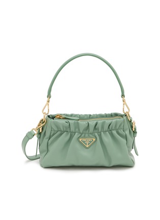 Prada(普拉达)这款精致手袋采用柔软皮革打造,褶皱细节勾勒轮廓层次魅力,珐琅金属三角形标志点睛其间,彰显品牌标志性印记。