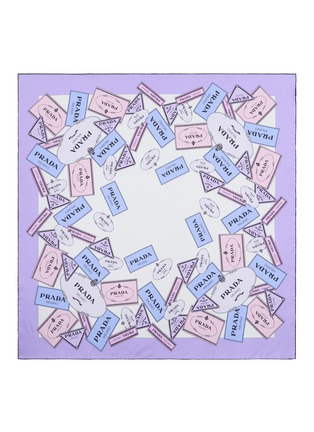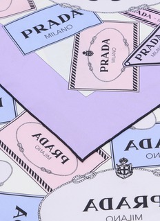 Prada's silk scarf celebrates the house's iconic heritage with playful logo motif. The luxurious square features all-over scattered logo print in contrasting hues, hand-rolled edges, and versatile styling options. Drape at neck, tie on bag, or wear as headscarf—effortless Italian elegance with signature brand panache.