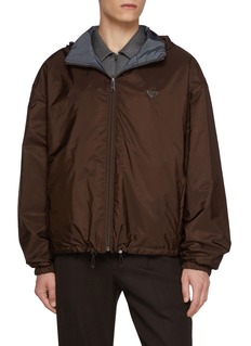 Prada 于 1913 年在米兰创立,是前卫风格的代名词。这款夹克采用双面穿面料剪裁,拉链门襟赋予整体造型现代气息,可拆卸连帽饰巧妙点缀,LOGO 细节低调彰显品牌身份。