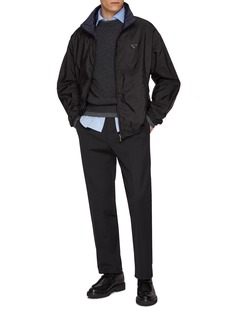 Prada 于 1913 年在米兰创立,是前卫风格的代名词。这款夹克采用光泽面料剪裁,拉链门襟赋予整体造型现代气息,松紧弹力带巧妙点缀,LOGO 细节低调彰显品牌身份。
