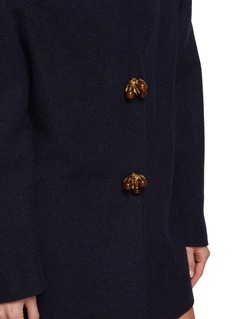 Prada 于 1913 年在米兰创立,是前卫风格的代名词。这款夹克以含羊毛面料勾勒立体廓形,反转领口惊喜玩味,金色纽扣点缀更为整体造型增添一抹华丽光泽。