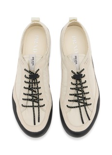 Prada 于 1913 年在米兰创立,是前卫风格的代名词。这款至臻轻盈的运动鞋以再生尼龙与绒面皮革打造立体鞋形,混搭材质彰显了品牌的运动风尚与精湛工艺灵魂。