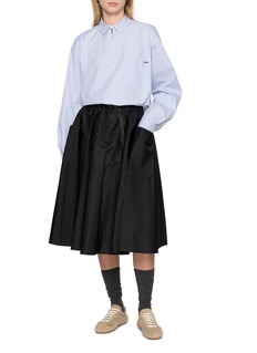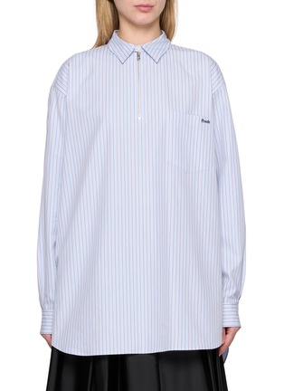 Prada 于 1913 年在米兰创立,是前卫风格的代名词,擅于将创新、精致而新潮的设计与手工产品特有的品质融为一体。这款衬衫用拉链翻领强化设计感,条纹面料保留简约基底,宽松廓形平衡随性与精致,低调标识藏品牌巧思,是衣橱里兼具设计与实穿的基础款。