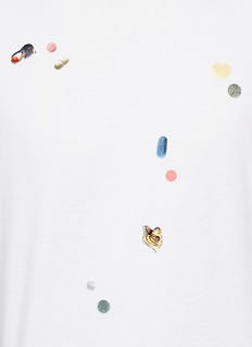 PS by Paul Smith致力打造一系列休闲风格的英伦服饰。这款T恤采用有机棉打造,既柔软舒适,又可减少对生态环境的破坏。多彩药丸、心形及老虎头造型胶印点缀了白色底,为您的日常装扮注入趣味。