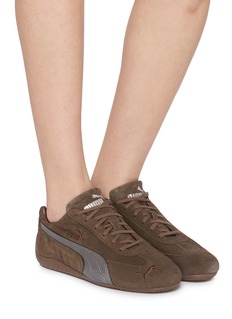 Stride in style with the PUMA classic suede sneakers, designed to elevate your everyday look. This pair flaunts a rich, earthy brown suede exterior, complemented by a signature PUMA formstrip in a contrasting grey hue. The low-profile silhouette ensures a sleek, timeless appeal, while the comfortable cushioned footbed offers support for all-day wear. Perfect for pairing with both jeans and joggers, these sneakers are a versatile addition to your footwear collection.