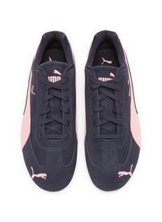 These Puma sneakers feature a chic and understated design, perfect for those who appreciate a touch of elegance in their sportswear. The deep navy body is beautifully contrasted with a soft pink Puma stripe, providing a subtle yet striking color combination. Crafted with a durable suede upper and a robust rubber sole, these shoes offer both comfort and longevity. The sleek, low-profile silhouette makes them versatile for styling with various outfits, from casual jeans to more athletic gear.