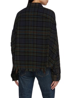 Channel the bold ethos with R13's checkered shirt. Crafted in check, this shirt disrupts the norm with a laid-back allure, detailed with dropped shoulders and raw hem detail. Perfect for those looking to make a statement.