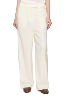 Balancing tailored precision with lounge-inspired ease, these track pants by R2W are crafted from lustrous wool satin with sheer side panel accents. The elongated line and relaxed drape lend a refined nonchalance, ideal for elevated daywear or understated evening looks.