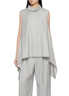 Shaped with architectural ease, this sleeveless top by R2W is cut from fine wool and falls into a fluid flared silhouette. The softly rolled high neckline frames the collarbone, making it a refined statement worn alone or layered with tailored outerwear.