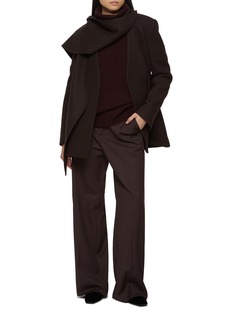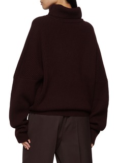 This oversized knit from R2W is spun from a plush wool-cashmere blend, offering warmth with an effortless drape. Defined by a relaxed silhouette and rolled turtleneck, it captures understated luxury—perfect for pairing with tailored trousers or layered over flowing skirts.