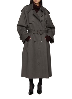 Tailored in a wool blend, this trench coat by R2W reimagines the classic silhouette with oversized proportions and sharp detailing. The storm flaps, epaulettes, and belted waist add a timeless touch, making it a versatile outer layer for both polished and casual styling.