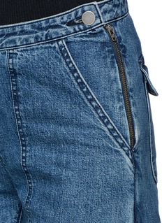 Rachel Comey的设计中饱含复古元素及摇滚色彩,这款牛仔裤无论从水洗面料还是喇叭裤腿都带着浓郁的怀旧韵味,九分长度令脚踝更显纤细,两个方形大口袋亦特色十足,是都市女孩们打造帅气造型的个性选择。