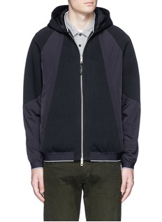 瑞格布恩为您的衣橱增添有型实用的单品,这款夹克以质感厚实的黑色混棉面料为主体,拼接耐磨的黑色尼龙面料,低调手法展现运动摩登风范。袖口及衣摆处以一缕白边为服饰注入新鲜感,内附的黑色网眼内衬可让外套更加耐用,有效防风保暖,为换季做好准备。