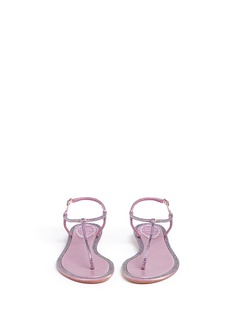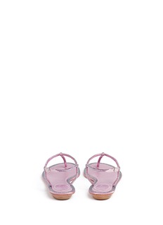 芮妮乔薇拉深谙如何利用女性化的细节和华美珠饰表现出高贵气质。这双平底凉鞋是品牌中相对简洁的款式,仅以两根缎面细带组合而成,但绊带及内鞋底边缘缀满了细密的圆形仿水晶,由意大利大师以精湛手工打造,耀眼夺目,即便搭配简约的日常着装,也能散发璀璨时尚光彩