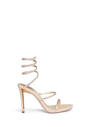 亮丽的水晶元素为芮妮乔薇拉的鞋履注入了生命力。这款高跟凉鞋经闪亮水晶点缀后分外高雅,两根细搭带完美衬托您的足踝,优雅的螺旋蛇形裸带贴合脚踝,让双腿显得更纤细迷人,艺术品般的设计绝对令人过目难忘。