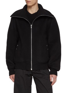 Rick Owens 的作品皆糅合哥特式暗黑风格及摇滚叛逆气质。这款夹克以大翻领剪裁焕新日常,罗纹和金属细节巧露纯色多层次质感。