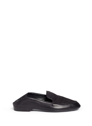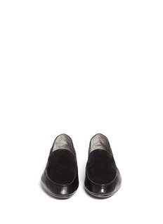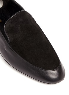 此款Robert Clergerie的乐福鞋以面料拼接带来触感变化,光滑柔软的小羊皮与绒面皮相拼接,为单色设计注入细节感,流畅的鞋型、杏仁头及矮跟设计可令腿型更显修长,是混搭中性造型的首选。