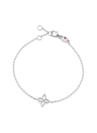 Graceful and understated, this bracelet captures the essence of refined femininity through a delicate floral motif. From Roberto Coin’s Diamond Princess collection, diamonds lend soft brilliance to the silhouette, while a signature hidden ruby rests close to the skin—an elegant accent for everyday or occasion wear.