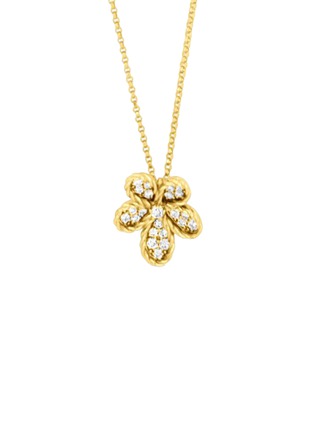 Delicately powerful, this Jasmine necklace by Roberto Coin captures the flower’s quiet resilience through sculpted gold petals illuminated by diamonds. Crafted in radiant yellow gold and finished with the house’s signature hidden ruby, it brings poetic refinement to everyday elegance and evening grace.