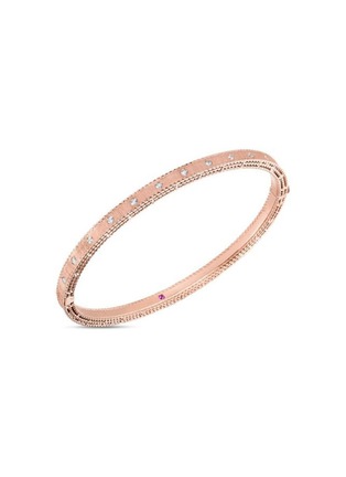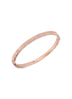Evoking a fairytale romance, this satin-finished bangle reveals quiet opulence through refined detail. From Roberto Coin’s Princess collection, diamonds trace the surface with subtle brilliance, while a hidden ruby rests inside—an intimate signature for elegant day-to-evening wear.
