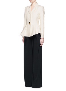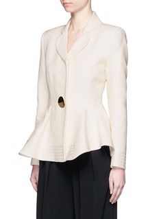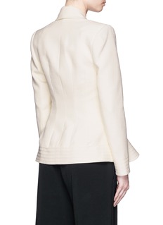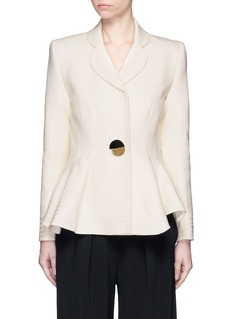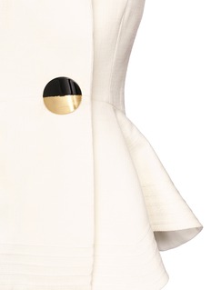 Roksanda这款西服外套以混羊毛绉绸面料承托出挺括廓形,厚垫肩不但强调肩部线条,更烘托出一份硬朗气息,平驳领改为柔和的弧边设计,结合立体荷叶边衣摆,充分体现您亦刚亦柔的独特个性。