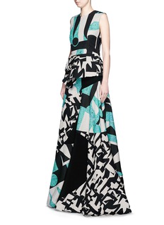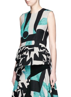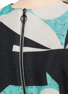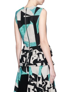 Roksanda这款上衣展示了品牌一贯的鲜艳用色,花绿色、黑色拼灰白色几何图案充满现代艺术气息,拼接下摆处的褶皱蝴蝶结营造立体感的同时更洋溢甜美女人味,让您打造优雅摩登造型。