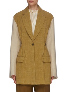 Roksanda善于融合女人味十足的廓型及丰富的饱和色彩,一展品牌独特的雕塑感美学。这款夹克剪裁利落流畅,其融入了西服外套版型,带来率性利落之感,拼接设计丰富了单品的质感与层次效果,结合雅致的用色,为你的摩登都市造型注入活力色彩。