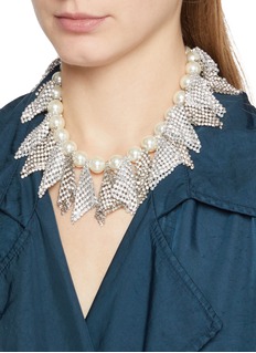 Big, bold, and full of personality. The Frizz necklace features flexible metallic mesh and resin pearls. A statement piece made to stand out and add fun energy to any look.