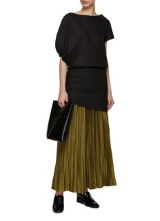 RUOHAN 于纽约创立,以旅行和文化艺术作为每一季的设计灵感,带来来自广阔世界的讯息,并专注于上乘的⾯料和精确的剪裁。这款半裙以褶裥设计与亮泽面料带来质感碰撞,俏丽出街。