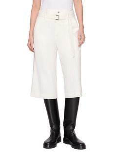 sacai 善于打破常规,制造惊喜,将各种材质、色彩、廓形巧妙糅合,颠覆传统时装美学。这款长裤采用六分剪裁,配有同色腰带,搭配皮靴带来酷飒步伐。